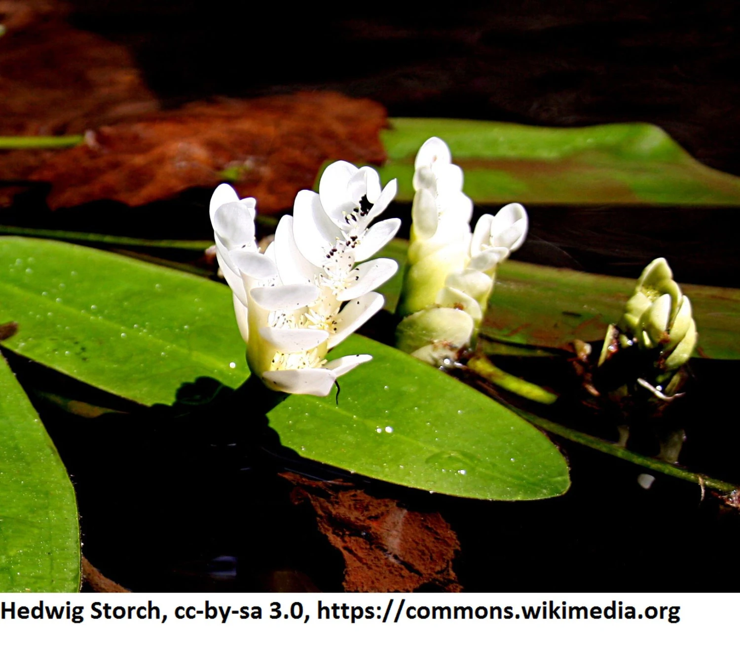 Die Afrikanische Wasserähre ist eine Schwimmblattpflanze ähnlich einer Seerose und bildet eine Knolle aus. Die lang gestielten, linearen breiten Blätter haben abgerundete Enden und schwimmen auf der Wasseroberfläche. Schon früh im Jahr erscheinen die ersten nach Vanille duftenden Blüten. Nach eine Sommerpause erscheinen im Herbst noch einmal zahlreiche neue Blüten. Die Pflanztiefe liegt bei 30 bis 80 cm, jedoch ist sie erst ab 50 cm gesichert winterhart. Wegen ihrer Tendenz zur Verwilderung ist Sorge zu tragen, dass sie nicht in natürliche Gewässer gelangt.