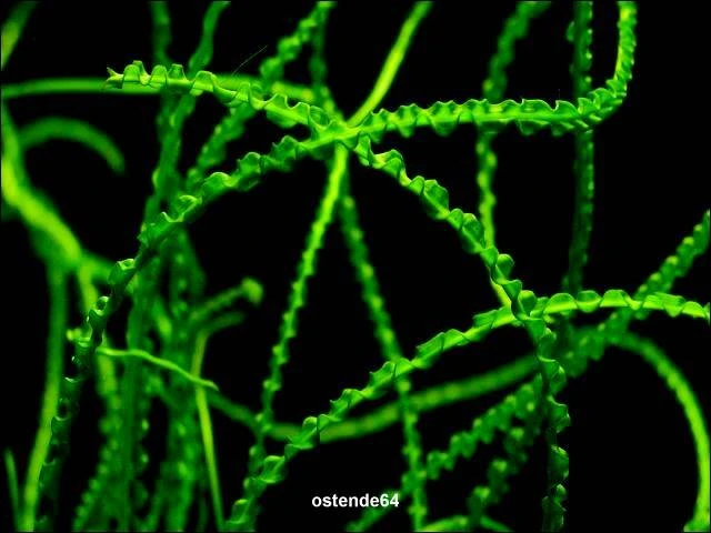 Crinum calamistratum ist ein sehr graziöses Zwiebelgewächs mit dunkelgrünen, am Rande stark gewellten und gekräuselten Blättern. Die zahlreichen festen und ledrigen Blätter erinnern an die Arme eines Polypen. Sie bildet weniger Zwiebeln als andere Crinum-Arten und benötigt etwas mehr Licht. In offenen Aquarien bringt die Crinum calamistratum manchmal weiße Blüten. Eine Vermehrung erfolgt automatisch durch zahlreiche Seitenzwiebeln – Tochterzwiebeln. Wird nicht von pflanzenfressenden Fischen gefressen und kann in Brackwasseraquarien mit geringer Salzkonzentration verwendet werden.