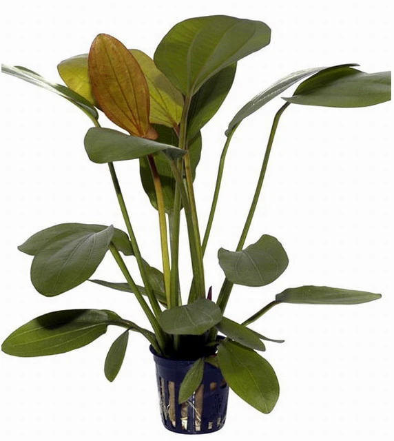 Echinodorus x barthii / Doppeltrote Osiris-Schwertpflanze oder auch Barths Schwertpflanze trägt verschiedene Namen und ist eine dekorative Solitärpflanze mit einer außergewöhnlicher Blattfärbung. Junge Blätter sind dunkelrot bis goldbraun, ältere dunkelgrün. Eine gute Farbentwicklung erhält man bei hoher Beleuchtungsstärke und ausreichend Mikronährstoffen im Aquarium. Ein nährstoffreicher Bodengrund und eine CO2-Zugabe fördern das Wachstum. Die Pflanze ist für große Aquarien besonders geeignet kann aber viel Schatten werfen und muß deshalb gelegentlich eingekürzt werden.