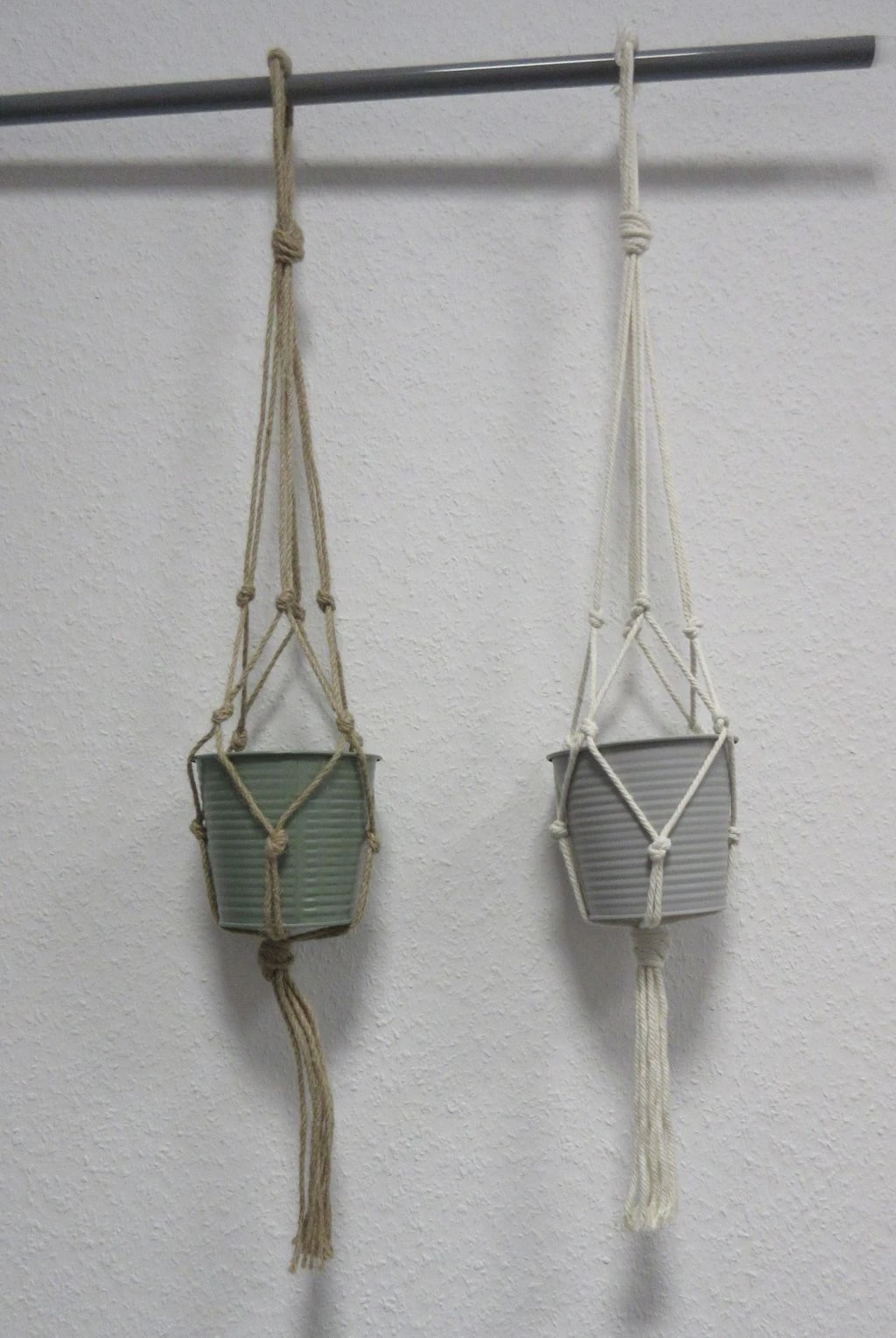 1x Blumenampel (grüne Topf, naturfarbenem Makramee)