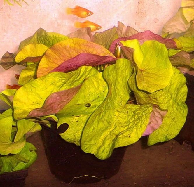 Die neue kleinblättrige Zwerg-Seerose aus Madagaskar hat oberseits fast runde, olivgrüne bis braunrote Blättern. Die Blattunterseite wird bei intensiver Beleuchtung purpurrot. Diese Lotus ist sehr wärmeliebend stellt aber ansonsten keine besonderen Pflegeansprüche. Sie ist die einzige Art die auch im Schatten gut zurecht kommet und ab und zu auch unter Wasser eine Blüte bilden kann. Als Solitärpflanze kommt sie in der Aquarienmitte oder bei kleineren Becken auch im Hintergrund am schönsten zur Geltung. Ein nährstoffreicher Bodengrund fördert das Wachstum. Mit DPK-Düngekugeln kann ganz gezielt nachgedüngt werden. Man sollte sich rechtzeitig für den richtigen Standort entscheiden um unnötiges Umpflanzen zu vermeiden. Die Vermehrung erfolgt durch Samen der sich in den selbstbefruchtenden Blüten bildet.