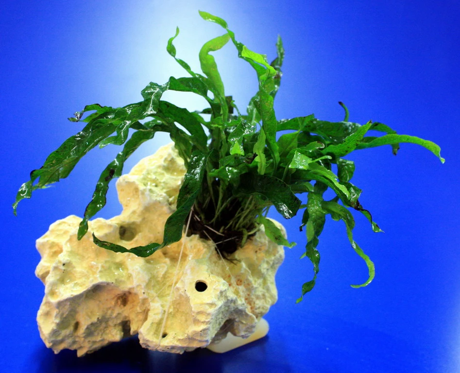 Lochstein Gr. S mit Javafarn / Microsorum pteropus Narrow auf künstlichem Mondstein