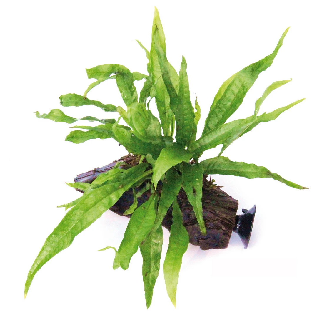 Das Javafarn auch Schwarzwurzel-Farn genannt ist ein sehr anspruchloses Wasserfarn, das mit wenig Licht sehr gut zurecht kommt und auf einer Wurzel oder einem Stein wachsen sollte. Bis es angewachsen ist sollte es mit einer Nylonschnurfixiert werden. Falls es in den Bodengrund gepflanzt wird, darf der Wurzelstock nicht bedeckt werden, da er sonst fault. Es lässt sich leicht durch Teilung des waagerechten Wurzelstocks (Rhizom) vermehren. Eine anspruchslose Pflanze, die unter allen Bedingungen wächst. Die schwarzen Flecken, die sich auf der Unterseite der Blätter bilden, sind Sporenbehälter (Vermehrungsorgane) und nicht wie manchmal vermutet eine Erkrankung. Adaptiv-Pflanzen bilden sich bei guter Pflege von selber an den Blattspitzen. Schöne Pflanze für Garnelen- als auch für Barschbecken.