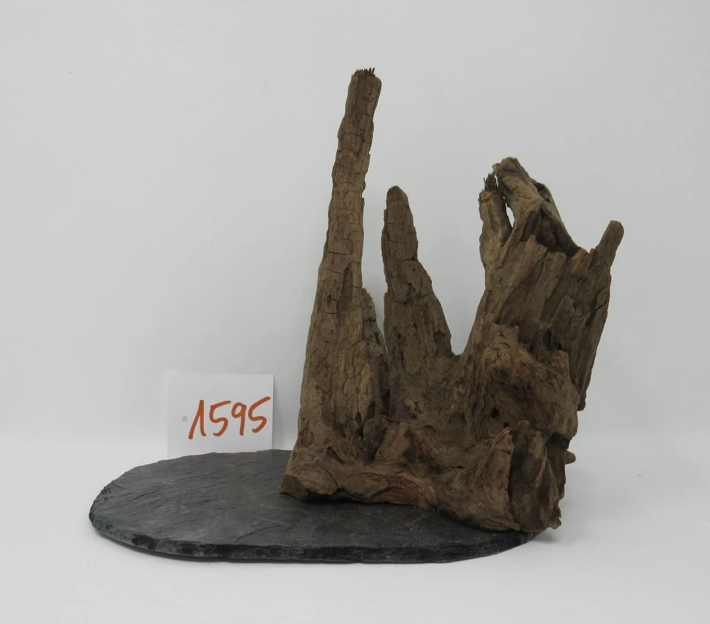 Die Wurzel ist für einen stabilen Stand auf einer Schieferplatte verschraubt. Die Schieferplatte kann bei Bedarf durch lösen der rostfreien Edelstahlschraube entfernt werden.