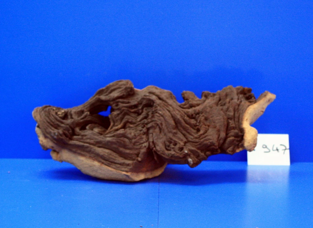 Die Wurzel aus zweifarbigem Mopaniholz ist neu und sandgestrahlt.